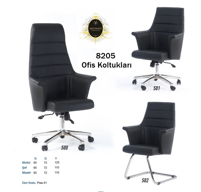 Siyah deri kaplama 8205 Müdür Koltukları, lüks tasarım.